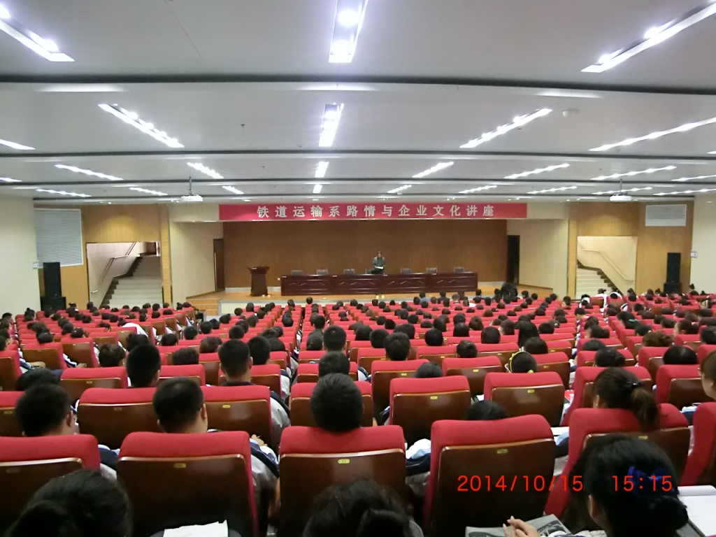 为了拓展学生的专业视野,促进学生对铁路行业的深入了解 。2014年10月15日下午,铁道运输系在图书馆报告厅举办专家讲座,特邀校企合作单位吉林车务段副段长、高级工程师、我院客座教授姜兴月,进行了《路情与企业文化》的专题讲座。系班子成员、系全体辅导员、铁道运输教研室部分专任教师及铁道交通运营管理专业2014级全体新生共同聆听了此次讲座。