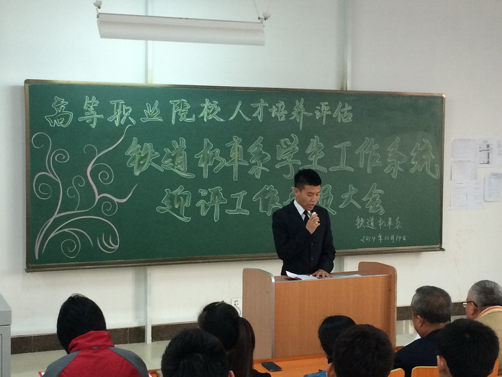 2014年10月14日下午,铁道机车系在教学楼西301教室召开了学生系统迎评工作动员大会,出席本次会议的有系班子全体成员、辅导员、各班班主任、全体同学。会议由系团委书记李佰玲主持。