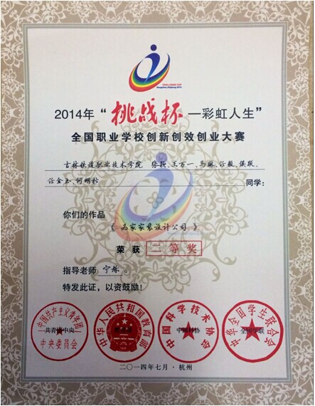 我院计算机系学生在宁烁老师的指导下组队参加2014年“挑战杯——彩虹人生”全国职业学校创新创效创业大赛,经过激烈的初评和复评答辩,最终我院代表队携创意设计类作品“为家家装设计公司”在复赛答辩中喜获大赛二等奖。