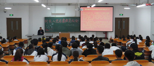 尹平书记结合中国共产党史和发展学生党员工作的有关规定,通过幻灯片的形式,分别从党情介绍、党员要求、入党程序以及入党动机等方面为新生做了全面的介绍。让学生正确认识到入党对自身的要求,大大提高了同学们对党的认识,端正了入党态度,树立了正确的入党动机。会上,尹平书记还就入党申请书、入党积极分子思想汇报等的写法及要求做了说明。