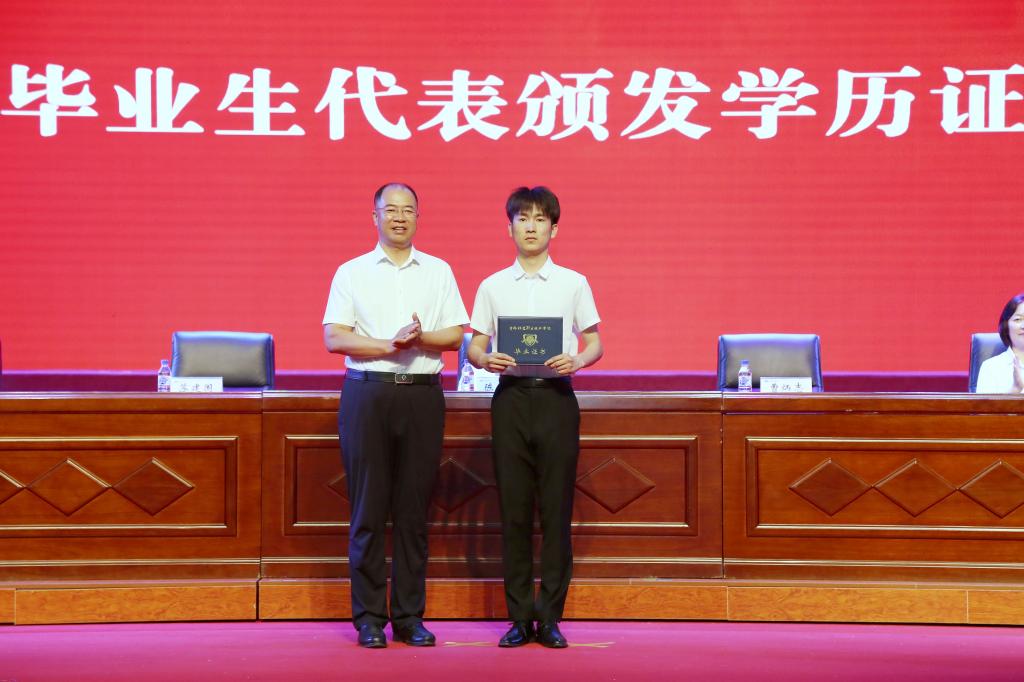 校长曹炳志为毕业生代表颁发学历证书