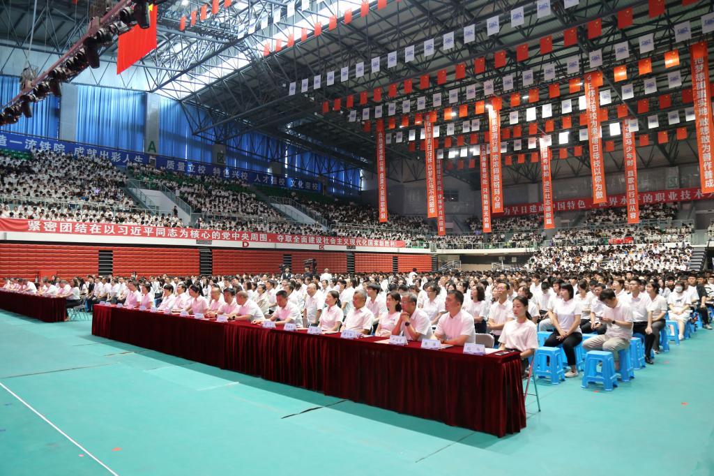 在雄壮的国歌声中,2024届毕业生毕业典礼拉开帷幕。李欣宣读了《关于表彰2024届优秀毕业生的决定》和《关于准予我校2024届4307名学生毕业的决定》。学校领导分别为优秀毕业生、毕业生代表颁发证书,全场报以热烈的掌声。毕业生代表,高铁综合技术学院铁道信号自动控制(中外合作办学)专业2102班尤喜赫同学,铁道运输学院张力鑫老师分别发言。