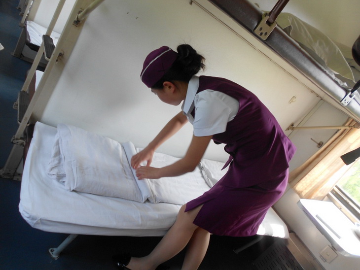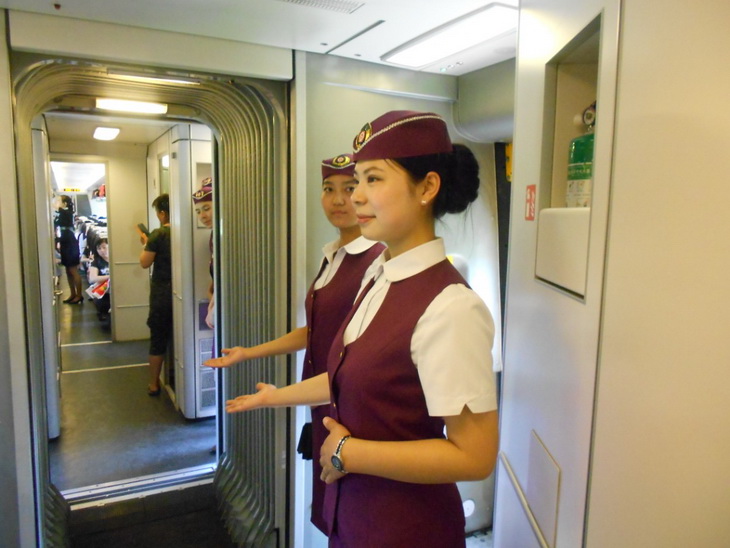 本次实习得到了吉林客运段的高度重视,安排的乘务组均已是多年从事客运工作的业务尖兵,举手投足间都能感受到他们专业、严谨的工作作风。在实习过程中,同学们虚心向师傅们学习专业知识,对“准备作业”、“接受列车”、“库内车容整备”、“开门立岗”、“组织旅客上车”、“车门管理”、“服务登记”、“运行中作业”、“到站前作业”、“停车时作业”、“组织旅客下车”、“终到交接”、“终到退乘”等各个环节的一次乘务标准有了一定的了解。