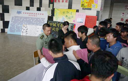 6月10日上午,我院武装部在教学楼一楼大厅设立咨询台,开展2014年征兵入伍现场宣讲咨询活动,解答大学生参军入伍的相关问题。永吉县人武部参谋杨博海、干事常兴国参加了本次活动,并现场宣讲解读了今年大学生应征入伍新政策等。我院武装部部长刘树全、副部长韩兵兵、干事刘晓佳老师亲临现场,为大学生解答疑问,发放征兵传单和《大学生参军入伍宣传手册》。