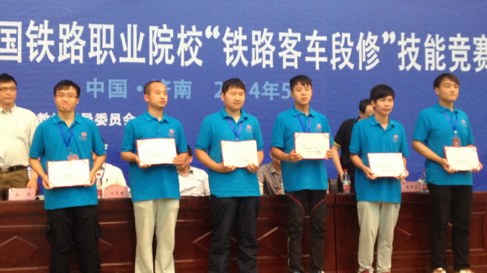 5月26-29日,我院铁道车辆系的10名学生在铁道车辆系教师的带领下参加了由全国铁道职业教育教学指导委员会举办的2014年全国铁路职业院校“铁路客车段修”技能竞赛,取得了优异的成绩。