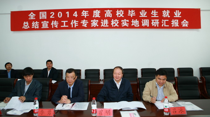 2014年5月26日,以西南民族大学校长曾明为组长的全国高校毕业生就业总结宣传工作专家组一行4人莅临我院对毕业生就业工作进行实地调研。专家组成员由武昌工学院院长李勇、河南省教育厅学生处处长吕冰和全国高等学校学生信息咨询与就业指导中心干部武杰组成。