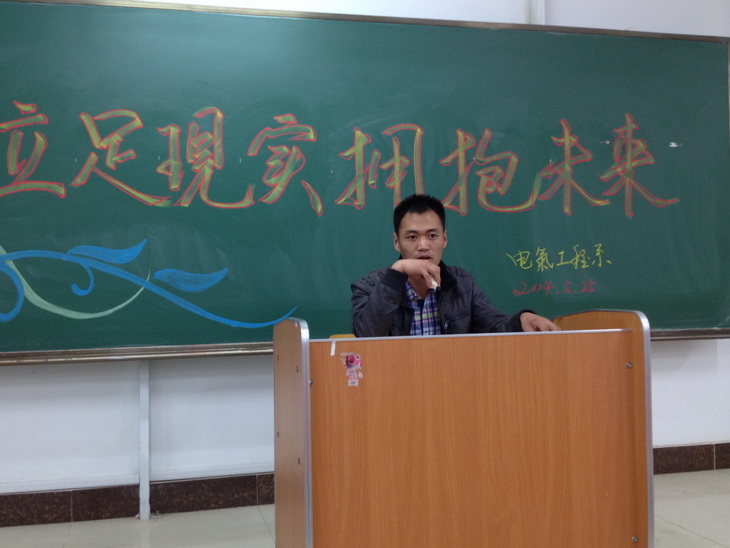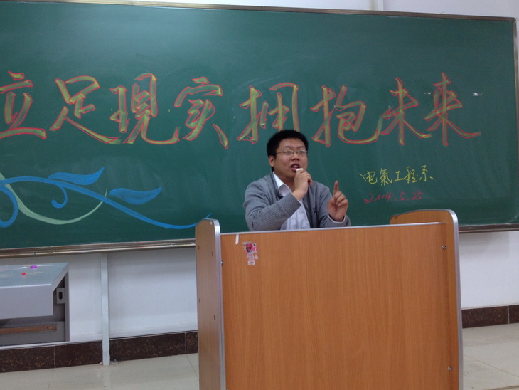 5月25日晚自习时间,为推动就业工作,加强就业教育,电气工程系在教学楼西201和202两个合班教室分别邀请本系2010届毕业生刘进龙和朱瑞峰两名优秀毕业生结合自己的就业感受,给大家做了以《立足现实 拥抱未来》为主题的就业教育讲座报告会。系党总支书记刘洪波、系团委书记徐薇、辅导员王法君以及2012级全体学生、2013级部分学生参加了报告会。报告会分别由徐薇和王法君老师主持。