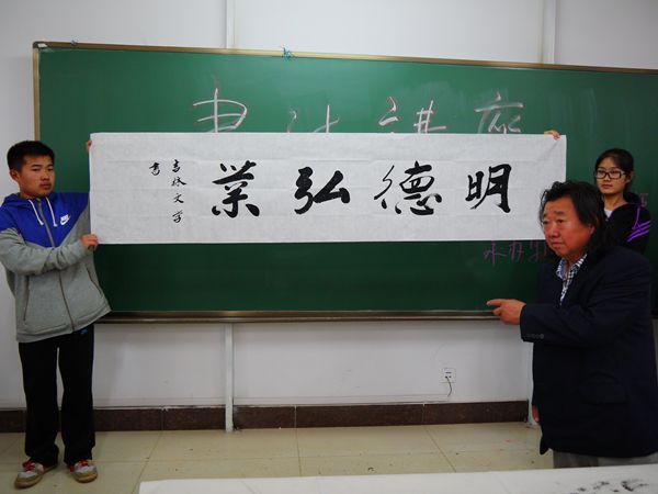 张文学老师为大家介绍了书法的价值、如何学习书法、如何欣赏书法等方面的知识。讲座中,他针对一些书法作品进行了精彩的点评与讲解,并进行了现场演示,为爱好书法的老师和学生赠字,师生们无不被他苍劲有力的字所折服。