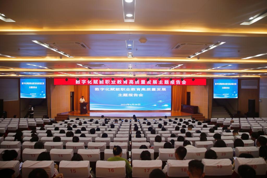 为贯彻落实国家《关于加快推进现代职业教育体系建设改革重点任务的通知》和教育数字化战略部署,推动国家职业院校数字校园建设、国家职业教育信息化标杆学校建设任务落实,持续推进学校教育数字化转型。6月28日,学校召开数字化赋能职业院校高质量发展主题报告会。