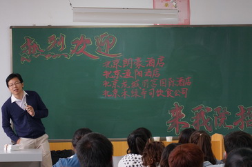 2014年5月16日上午,学院经济管理系在教学楼809教室举办企业招聘宣讲会,北京龙城丽宫国际酒店、北京渔阳饭店、北京朗豪酒店、北京禾绿回转寿司饮食有限公司等四家企业到会。经济管理系2012级旅游管理专业、财务管理专业及会计专业的140多名同学来到招聘宣讲会现场。