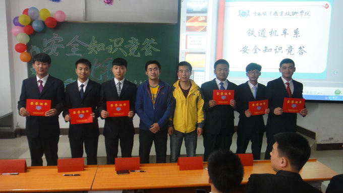 为了增强广大学生的安全防范与自我保护意识,铁道机车系于2014年4月25日举办“安全知识竞答比赛”。辅导员王蒙、班主任何林军出席比赛活动。