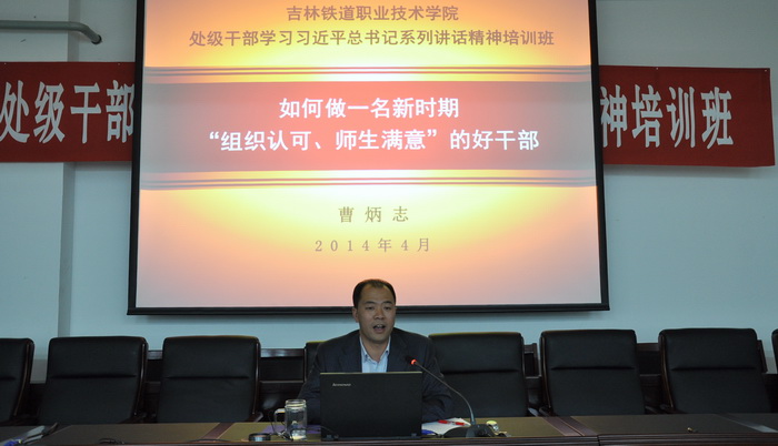 4月23日下午,为深入开展党的群众路线教育实践活动,结合实际搞好党员干部学习教育,同时按照《学院举办处级以上干部学习贯彻习近平总书记讲话精神轮训班日程安排》,学院党委副书记曹炳志做《如何做一名新时期“组织认可、师生满意”的好干部》专题报告。学院副科级以上干部、教研室主任和辅导员参加了报告会。