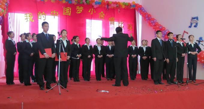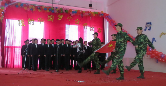 来自9个系的学生合唱队,演唱了《龙的传人》、《我爱你中国》、《中国人》、《精忠报国》等一首首雄浑激荡、催人奋进、大家耳熟能详的曲目,用一首首经典歌曲诠释了共同的“中国梦”。各参赛队伍精神饱满、意气风发,不时点燃现场观众的激情,博得阵阵掌声。