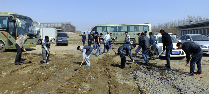 4月11日中午,结合党的群众路线教育实践活动,铁道车辆系党总支组织教师全体党员和部分学生入党积极分子开展了一次平整学院临时停车场的义务劳动。
