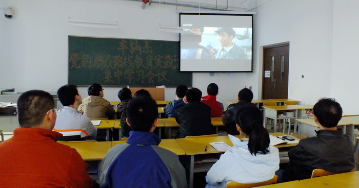 首先,由系党总支书记张向力传达了学院党委教育实践活动领导小组关于近期工作的具体安排和学习要求,并学习了宣传组下发的部分学习材料。之后,观看电影《焦裕禄》。
