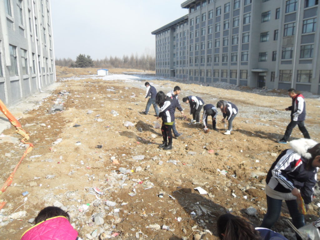 在系学生工作老师的带动下,同学们利用课余时间,在校园捡拾垃圾,美化校园环境。整个过程同学们表现得非常积极,不顾垃圾脏乱,不畏天气寒冷,同学们干得热火朝天,互帮互助,团结一致,自觉自愿地参与到学习雷锋的活动当中。本次活动进展顺利,校园面貌焕然一新,校园的每个角落变得干干净净,让人看着心情特别舒畅。