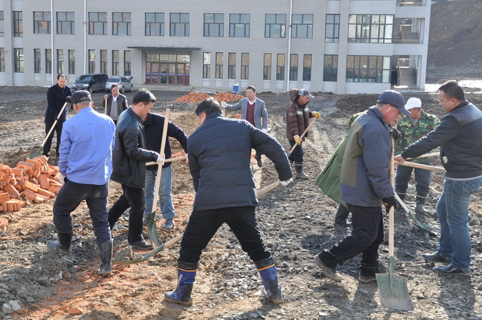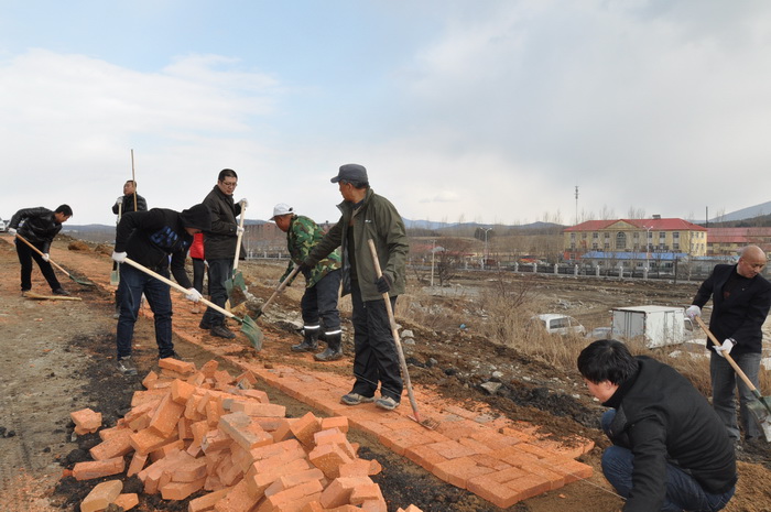 3月20日下午,在后勤党总支书记孟祥辉和处长张兴志、副处长李勇智的带领下,后勤管理处党员干部职工20余人,在行政办公楼与培训中心教学部大楼之间用红砖铺设一条长200多米的人行道路。