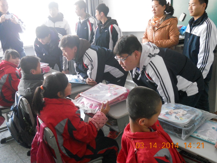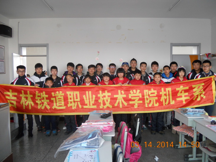2014年3月14日下午,铁道机车系开展了以“关心聋哑儿童,传递人间真爱”为主题的献爱心活动。系团委书记组织了20名青年志愿者,赴吉林市特殊教育实验学校,为聋哑儿童献爱心送温暖。