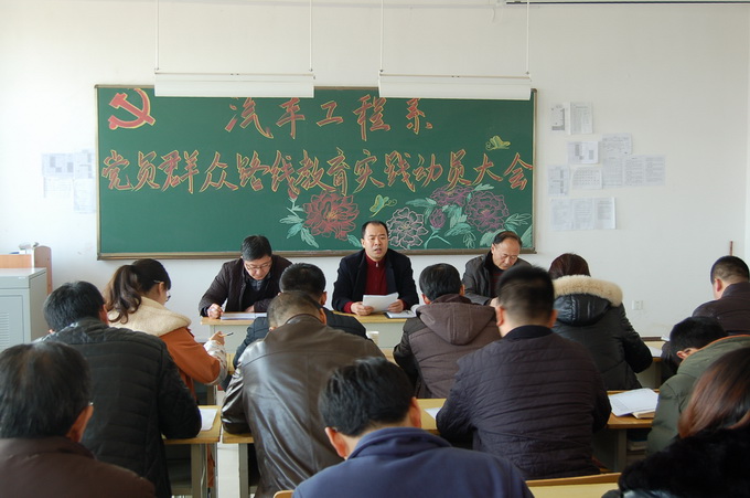 汽车工程系主任段金辉宣布汽车工程系党的群众路线教育实践活动实施方案,并做总结发言。他表示,汽车工程系党总支和全体党员、干部一定要认真学习领会和贯彻落实中央、省委和学院党委深入开展党的群众路线教育实践活动的精神,自觉主动接受督导组的指导监督,切实落实实施方案要求,确保活动沿着正确的方向扎实有效开展,以作风建设的新成效全面推动汽车工程系各项工作再上新台阶,为实现学院又好又快发展做出应有的奉献。