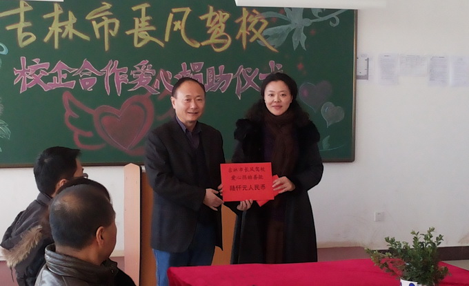 吉林市长风驾校作为本土企业,在近年来不断发展壮大的同时,时刻不忘回馈社会,关注公益事业,履行自己的社会责任。尤其是作为我院校企合作单位,始终把关心学生成长、促进学院的教育发展放在优先位置,奉献爱心,资助家庭经济困难学生;捐赠汽车工程系实训车辆,改善学院实训教学条件;为学院师生提供优质的汽车驾驶培训,提供免费汽车救援服务,以实际行动向社会展现了企业爱心和对社会公益事业的理解。