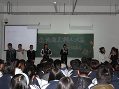 本次活动主要分为三个环节:第一环节为“初露锋芒”,这一环节是选手们充分展示特长的时刻,有激情洋溢的朗诵,有动人心扉的歌曲,给老师、同学们留下了深刻的印象;第二环节是“大战口才”,选手们都运用了各种独特的方式来进行自我介绍,有的用VCR,有的用PPT,使大赛更具观赏性,每个环节之间还插入了表演节目;第三个环节是模拟主持,选手们根据自己的特点模拟主持了自己喜爱的节目,有人物访谈、大型晚会、综合娱乐节目、少儿节目、还有一名同学模拟主持了新闻播报和天气预报,他们的精彩主持赢得了现场观众的阵阵掌声将比赛推向了高潮。通过层层的筛选,最后经过评委评审,王万一同学摘得桂冠,曹茜莹、王静琳同学取得亚军,黄月、徐英娇、赵鹤同学赢得第三名。