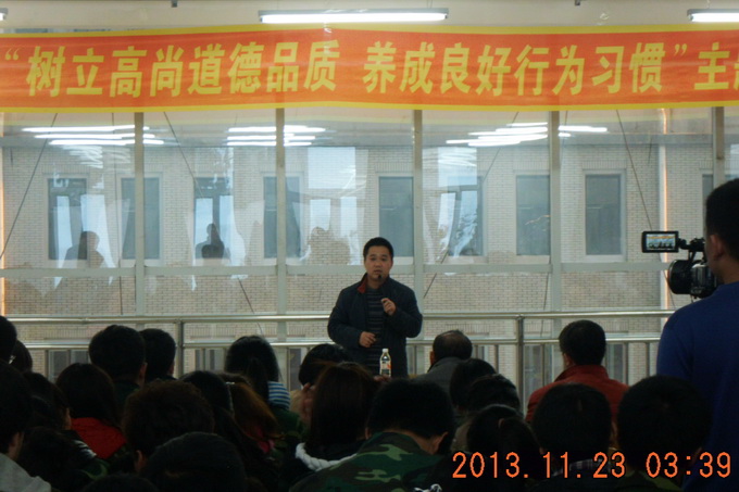 11月23日下午3时,吉林市著名节目主持人笑天应邀到我院实训基地四号楼,为汽车工程系2013级学生举办了一场关于道德行为养成的主题报告会。汽车工程系党总支书记王力群、系主任段金辉、系副主任李善锋、系办公室主任董大伟、辅导员罗伟、闫瑞雪以及2013级各班班主任出席报告会。报告会由系团委书记孙业番主持。