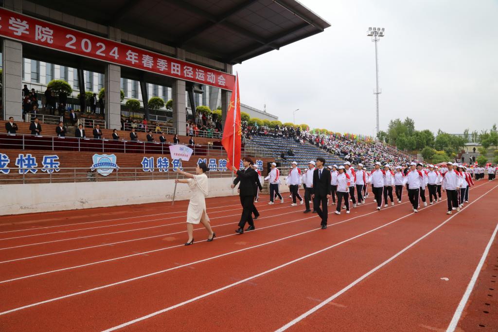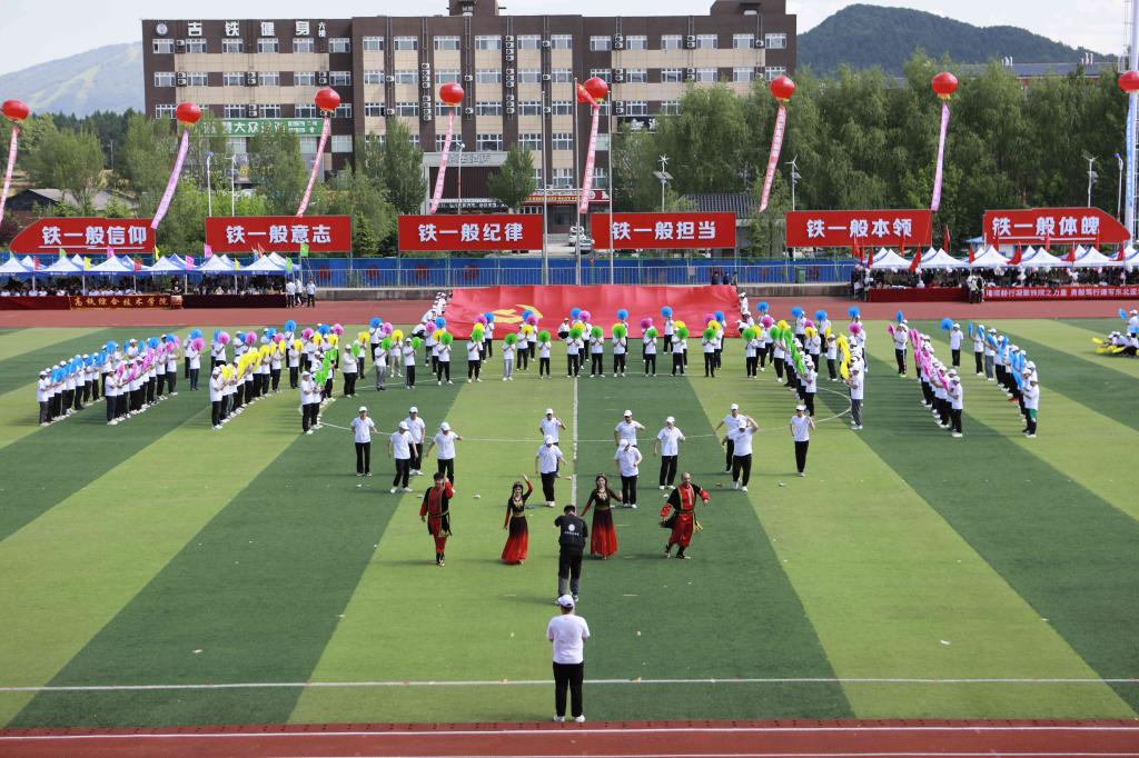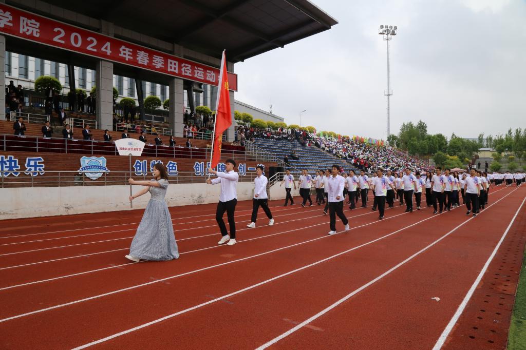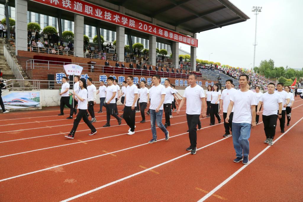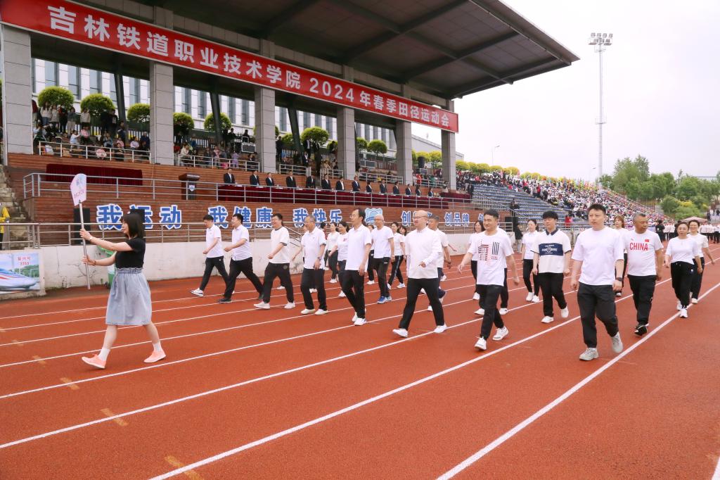彩旗在晨风中飘扬,激昂的音乐在绿茵场上回荡,伴随着激昂的《运动员进行曲》,国旗护卫队持鲜艳的五星红旗入场,彩旗队、花束队、各分工会代表队、各学院师生代表队依次走过主席台,接受大会检阅。受检阅人员步伐整齐划一、铿锵有力,赢得了阵阵掌声,鲜艳夺目的花束、青春洋溢的笑脸,无不彰显了吉铁院人奋发向上、勇立潮头的精神风貌。