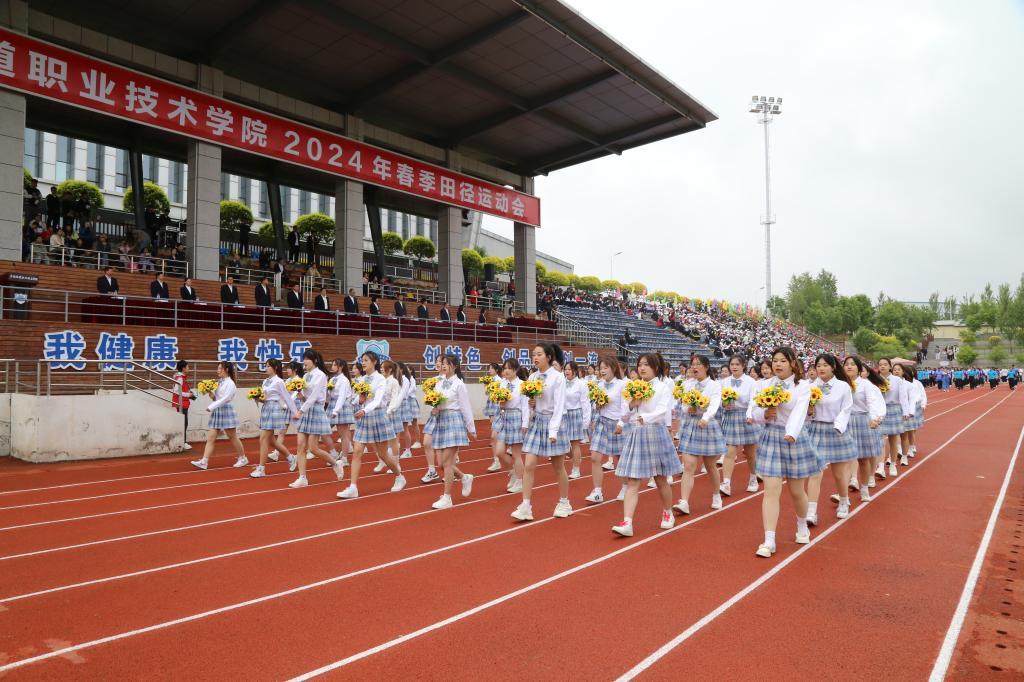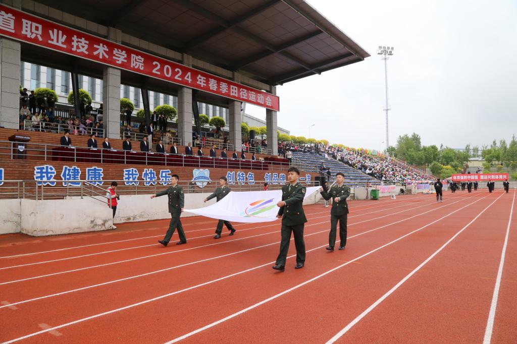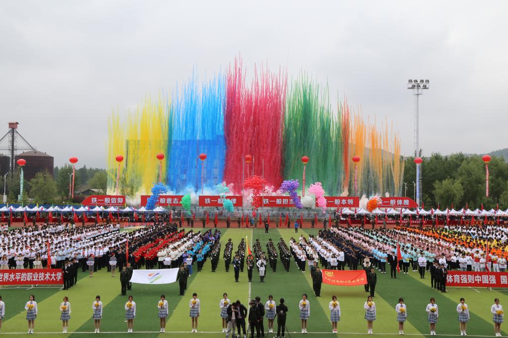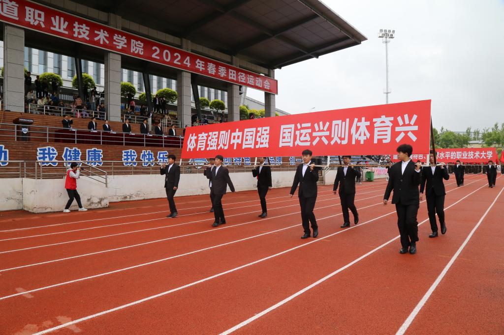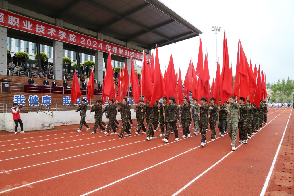 彩旗在晨风中飘扬,激昂的音乐在绿茵场上回荡,伴随着激昂的《运动员进行曲》,国旗护卫队持鲜艳的五星红旗入场,彩旗队、花束队、各分工会代表队、各学院师生代表队依次走过主席台,接受大会检阅。受检阅人员步伐整齐划一、铿锵有力,赢得了阵阵掌声,鲜艳夺目的花束、青春洋溢的笑脸,无不彰显了吉铁院人奋发向上、勇立潮头的精神风貌。