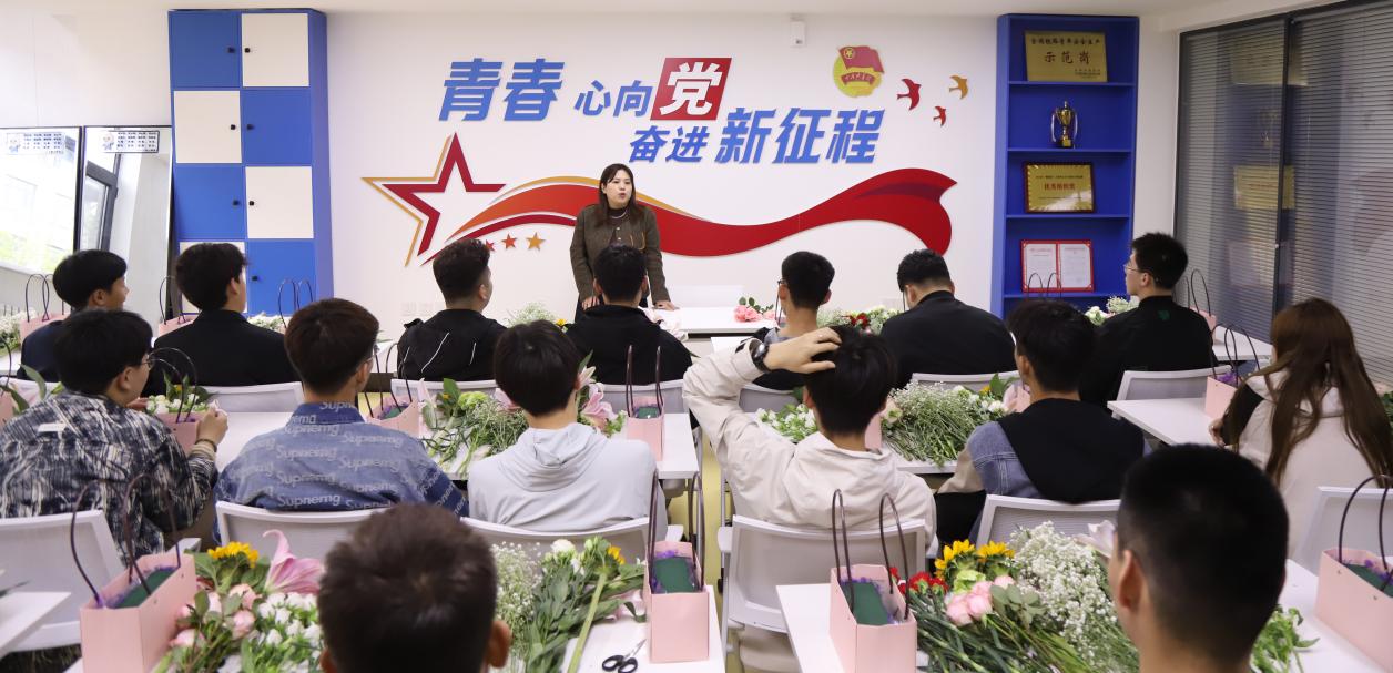 在“一站式”学生社区“青春建功”工作室设置活动分会场,开展自然实践教育。美育劳育教学研究院教师王方指导并示范插花设计过程。在动手实践过程中,培养学生绿色环保意识,强化美育引领。