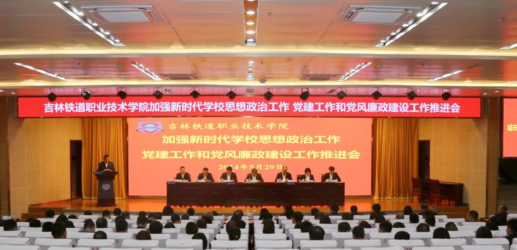 5月29日,学校在图书馆报告厅召开吉林铁道职业技术学院加强新时代学校思想政治工作、党建工作和党风廉政建设工作推进会。党委班子成员、纪委委员,各基层党组织书记、支部委员,全体副科级(含)以上干部,辅导员,马克思主义学院教师及全体机关干部参加会议。会议由党委副书记、校长曹炳志主持。