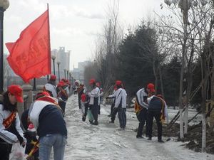 在凛冽的寒风中,志愿者们在系团委书记宋洋的带领下,前往东校区附近江边的草坪、街道进行白色垃圾清理。他们拿着小铁铲、夹子、垃圾袋等工具,积极完成分配的任务,捡拾路面上的塑料袋、废纸等丢弃物,清理路灯柱上张贴的小广告,整个活动场面热闹非凡。他们不怕脏不怕苦,不放过每一寸土地,不留下一块碎片。很快,原本脏乱的街道又重新焕发了生机。