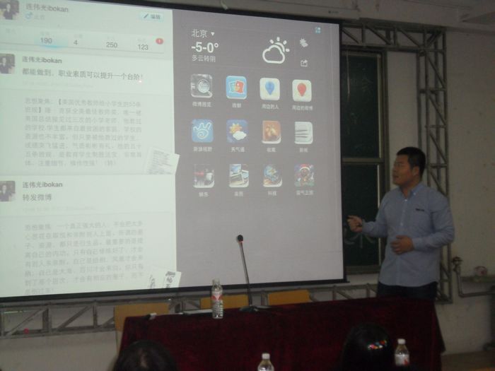论坛分为IOS技术研发讲座和职业发展指导两个环节。来自博看文思(北京华安永兴科技有限公司实训基地)就业咨询讲师连老师用诙谐风趣的语言给同学们带来了一场精彩的技术研发讲座。他将IOS技术研发师概括为“四高”人才——高科技、高收入、高门槛、高平等,使同学们对IOS的技术研发过程有了生动直观的认识,并从技术、管理以及行政三个方面的内容深入了解了北京华安永兴科技有限公司的相关体系。随后,连经理从软件技术人员的技能和职责到公司内部复杂的培训机构和培养模式一一作了介绍,使同学们深入了解了技术公司内部的质量管理实务。在职业发展指导环节,连经理为同学们带来了一堂生动的个人生涯规划与就业指导讲座,让同学们对于企业所需人才的素质和成长轨迹形成了直观的认识。讲座的最后,来自人事部门的负责人发放了大学生就业状况调查表,鼓励同学们深入技术研发第一线去。