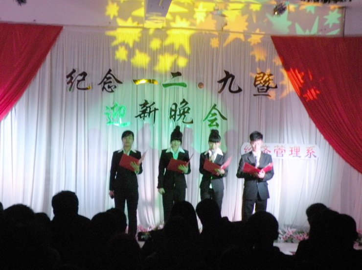 12月9日晚,经济管理系“纪念一二·九暨迎新晚会”在综合楼三楼大厅举行。