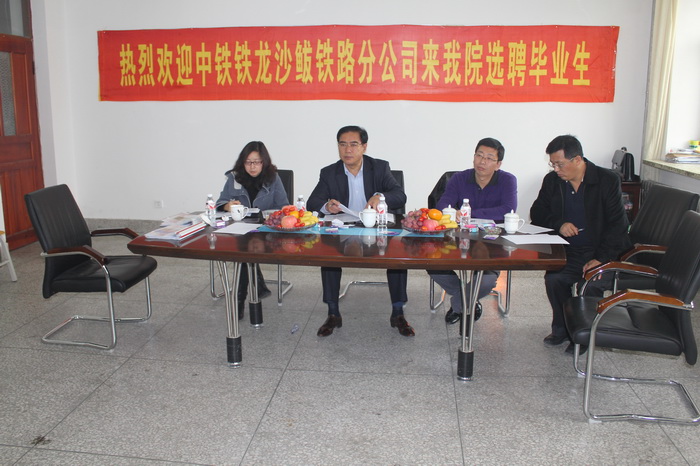 2008年以来,沙鲅铁路分公司先后从我院选聘了铁道交通运营管理、铁道通信信号、铁道工程技术三个专业近百名毕业生到公司工作。这次由总公司宋德绪副总经理,总公司人力资源部郭德飞部长带队一行4人来我院选聘2014年毕业生,全院共有69人报名参加面试。通过面试考核,最终拟录用铁道信号专业5人,铁道交通运营管理专业21人。同时,学院领导就校企深度合作与铁龙公司领导进行了交流。