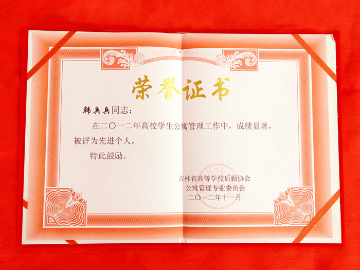 2012年吉林省高等学校学生公寓管理工作先进个人