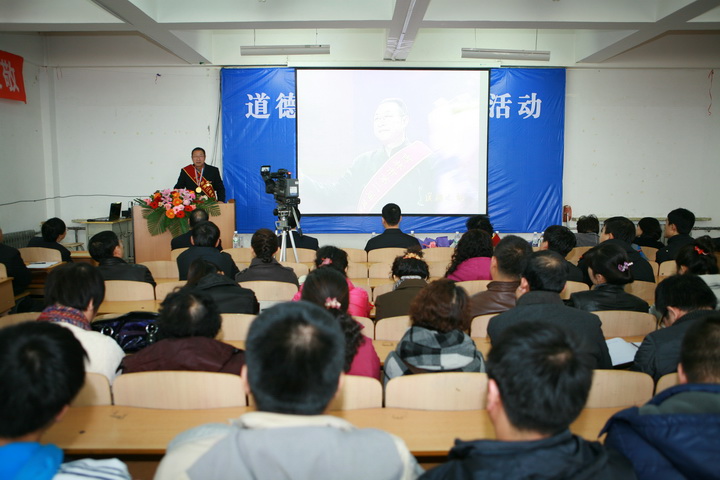 报告会上,与会师生共同观看和聆听了吉林市爱心家园创始人,获得国家及省市优秀志愿者标兵、全国抗震救灾先进个人、城市英雄,吉林省志愿者标兵、江城十大爱心女性、感动江城人物等称号的刘凤英同志;当选全国优秀乡村医生,被评为国家中医药管理局评为传承中医突出贡献模范人物、吉林市建国60周年江城60名英雄人物、助人为乐道德模范、感动江城人物的岳汝华同志;荣获吉林市第二届道德模范、“最佳孝顺儿媳奖”、“幸福家庭”典型的崔雅茹同志等三位道德模范的先进事迹短片和感人至深的报告。三位道德模范介绍了自己令人感动的经历,与在座师生交流了践行社会主义荣辱观的心得体会。