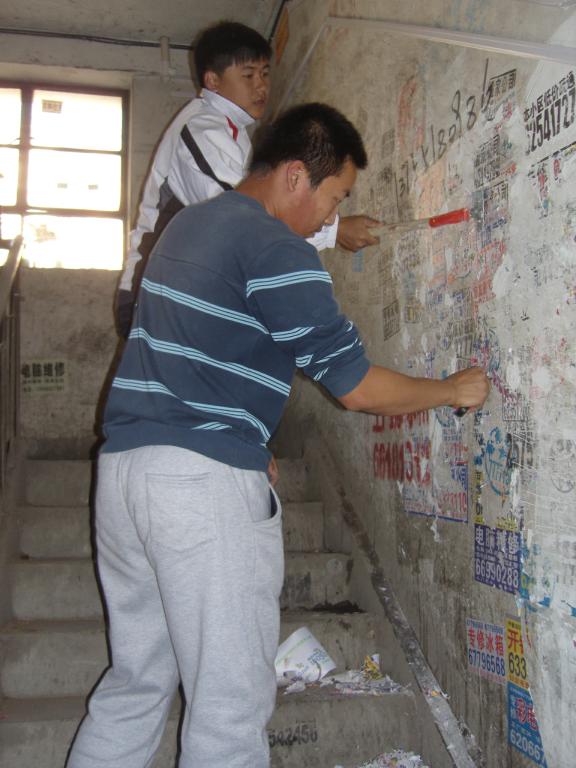 在系旗的引领下,志愿者们积极响应“以服务社区、奉献社会为荣”的号召,开始了清除野广告的工作。野广告被清除掉了,同学们的意志、品质也得到了锻炼,思想道德素质得到了提升。