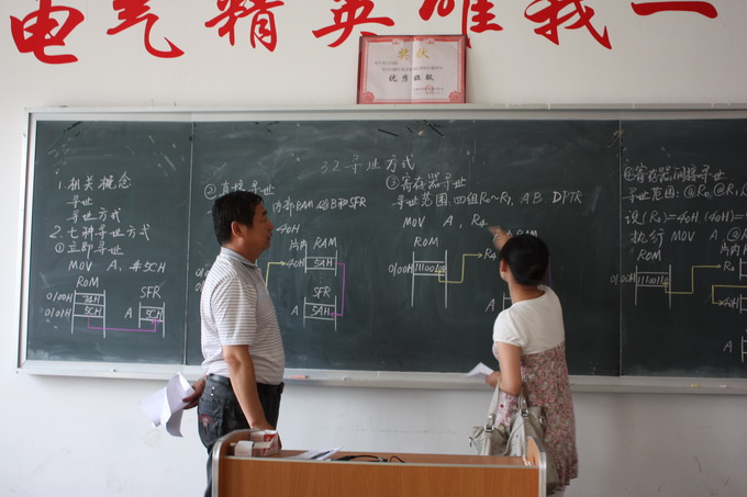 为提高青年教师的教学基本功和业务能力,电气工程系于6月25日15:20时在东3514室举办了“教学基本功系列竞赛”之教案、板书设计比赛。学院副院长王华、教务处处长于素芳、教务处副处长王治生、教务处副处长张磊、图书馆副馆长高顺南以及学院教学督导组的孙立秋、薛海燕、梁丽、程英杰四位老师出席并担任评委。