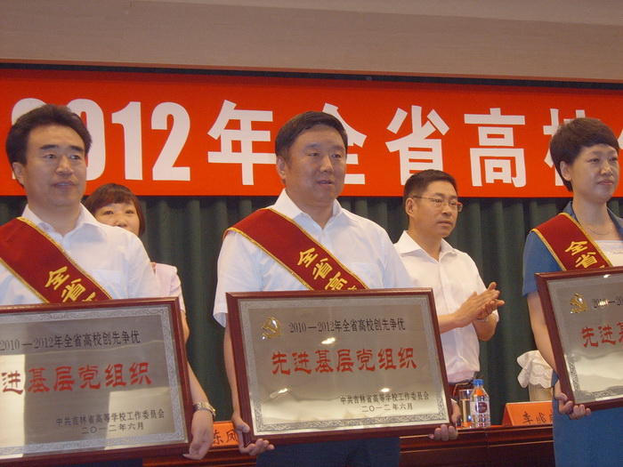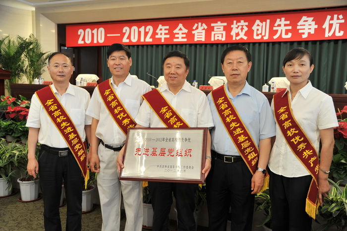 会上,省高校纪工委书记何文博宣读了省高校工委《关于表彰2010—2012年全省高校创先争优活动先进基层党组织、优秀共产党员的决定》,全省高校120个基层党组织、120名共产党员受到表彰。其中,我院党委荣获“2010—2012年全省高校创先争优先进基层党组织”称号,汽车工程系党总支荣获“2010—2012年全省高校创先争优先进基层党组织”称号,杨光赤、张辉同志荣获“2010—2012年全省高校创先争优优秀共产党员”称号。省高校工委领导为获奖单位和个人进行了授牌颁奖,我院党委书记于俊秋同志代表先进基层党组织上台领奖。全省高校创先争优活动先进基层党组织代表长春工业大学党委书记董玉辉、优秀教师党员代表长春大学特殊教育学院辅导员刘海涵、优秀学生党员代表长春财经大学张爽在大会上发言。
