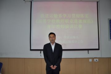 5月25日下午,铁道运输系举办了“树师德形象,做师德楷模”演讲比赛,开展师德师风教育,铁道运输系全体教师参加了活动。学院副院长王华、宣传部长周环宇、教务处处长于素芳、教务处副处长张磊及督导组全体教师应邀参加并担当评委。