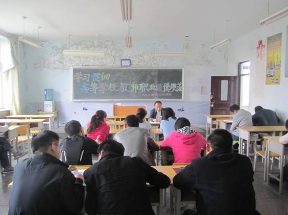在会上,王力群书记带领全系教职工共同学习了《高等学校教师职业道德规范》,并例举了典型的案例进行分析、点评,以此提高全系教职工的师德师风觉悟。