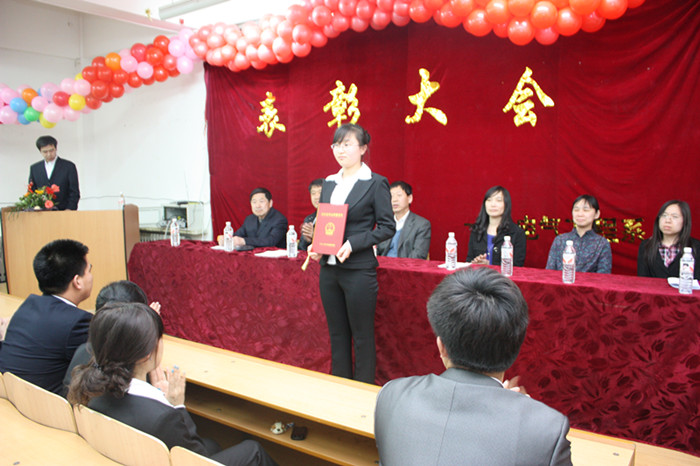 本次大会由系主任张辉宣布了获得国家奖学金、国家励志奖学金和省政府奖学金的学生名单;系辅导员王法君、常晓天分别宣布了10级和11级获校内奖学金名单;系办公室主任刘振波宣布了获先进个人、先进班级和标兵寝室名单;张青青老师宣布了参加电子大赛获奖者名单。