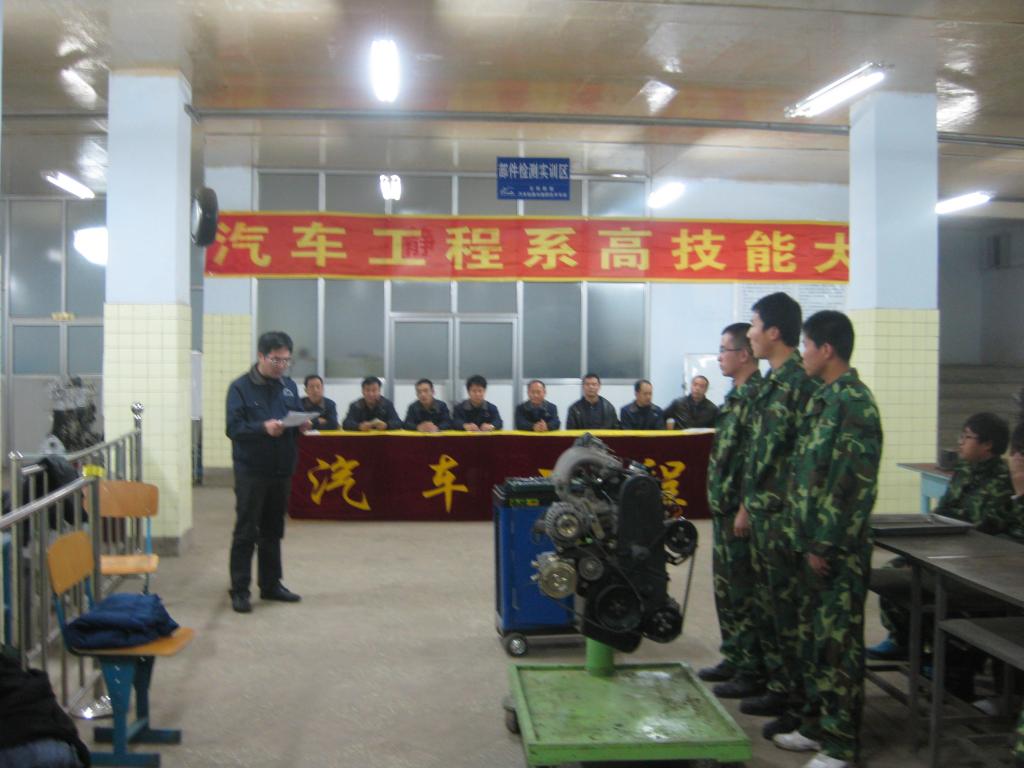 2011年11月18日下午,汽车工程系举办了第四届汽车发动机拆装技能大赛。本次比赛共有4个专业、7个班级、13个代表队、39名选手参加。系党总支书记王力群、系主任李原福及全体教师出席观看了比赛。
