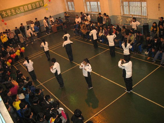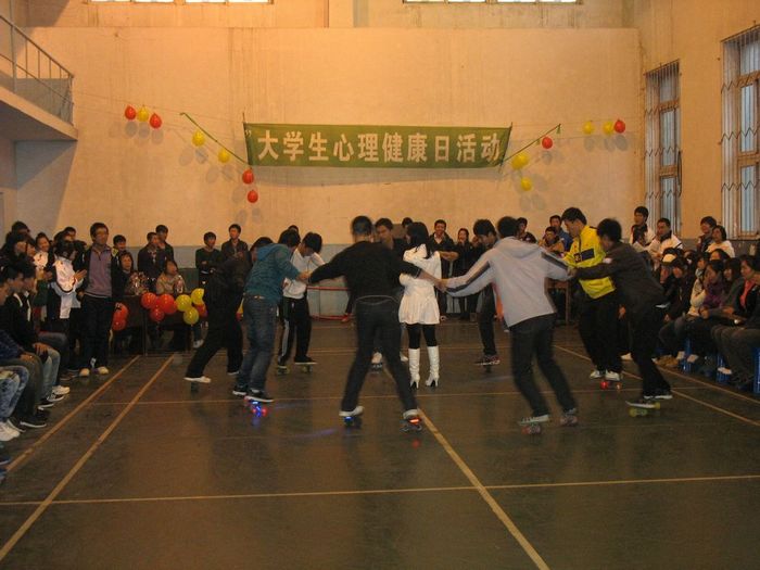 2011年11月11日下午3点30分,在学院西校区体育馆内,随着一首歌曲《感恩的心》,学院心理协会第七届新老生联谊会暨心理素质拓展活动交流会正式开始。参加活动的人员主要是东西两校区心理协会的会员。
