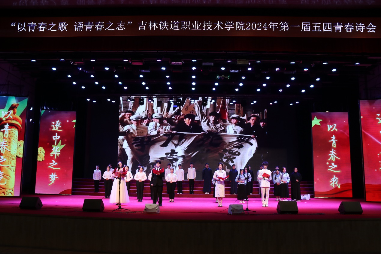 4月25日下午,学校团委、学生工作处和关心下一代工作委员会在学校大学生活动中心联合举办“‘以青春之歌 诵青春之志’吉林铁道职业技术学院青春诗会”。相关部门领导、各学院党总支副书记和青年师生代表共千余人参与活动。