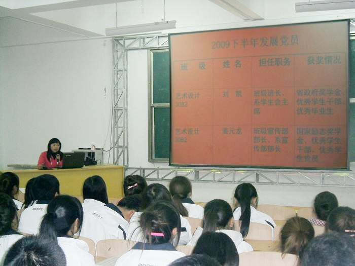 会上,首先尹书记主要从“为什么要入党”、“入党是为了什么”、“如何向党组织靠拢”这三个方面,讲述了中国共产党的性质、入党的动机和入党的基本条件、如何写入党申请书、入党的基本程序等内容。阐述了大学生要树立坚定的马克思主义信仰,树立正确的入党动机,通过追求入党的过程,让自己在思想上更加成熟、理想信念上更加坚定、服务社会主义建设事业的本领更加卓越。其次,团委书记宋洋用生动的事例向大家介绍了计算机系已经发展的学生党员情况,重点向同学们讲述了学生优秀党员代表的先进事迹,将他们在校期间的现实表现,取得的优异成绩详细呈现给同学们,为新生以后如何提高思想政治觉悟、提升综合素质和能力、做全面发展的大学生树立了明确的努力方向。最后,播放了由中共中央党校蔡霞教授主讲的“学习十七大新党章的意义”的教育片。