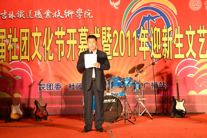 金秋九月,硕果飘香。9月25日和26日,吉林铁道职业技术学院花团锦簇,彩旗飘扬。由学院团委主办,由学院学生社团联合会、学生会、广播站承办的第五届学生社团文化节开幕式暨2011年迎新生文艺晚会分别在东西两个校区举办。学生处长刘树全,各系党总支书记、团委书记、辅导员以及部分班主任老师,2011级全体新生和部分老生代表3000余人参加了活动。