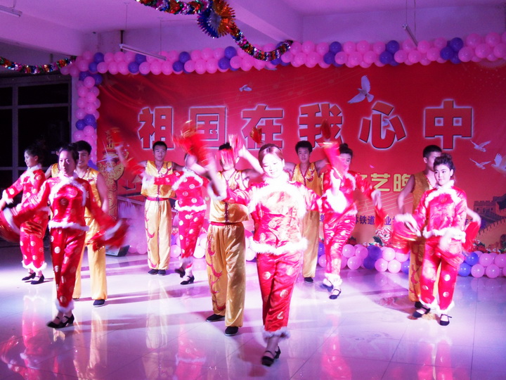 晚会在舞蹈《好日子》中拉开了序幕,同学们踩着优美的舞步翩翩起舞,充满了浓郁热烈的喜庆气氛;杨忠强同学的反串表演《新贵妃醉酒》第一次将晚会推向了高潮;王正凯等同学的《双截棍》表演彰显了青春活力;张文军同学的《MC》表演寓意着祖国繁荣昌盛和铁院的蓬勃发展;朴泰林同学的舞蹈《MOON》用动感的舞步和饱满的热情,激起了满场观众的欢腾……整台晚会内容丰富、主题鲜明、形式多样,洋溢着节日的喜庆气氛。最后晚会在全系师生《歌唱祖国》的大合唱声中圆满落幕。