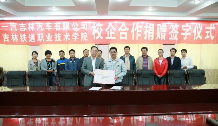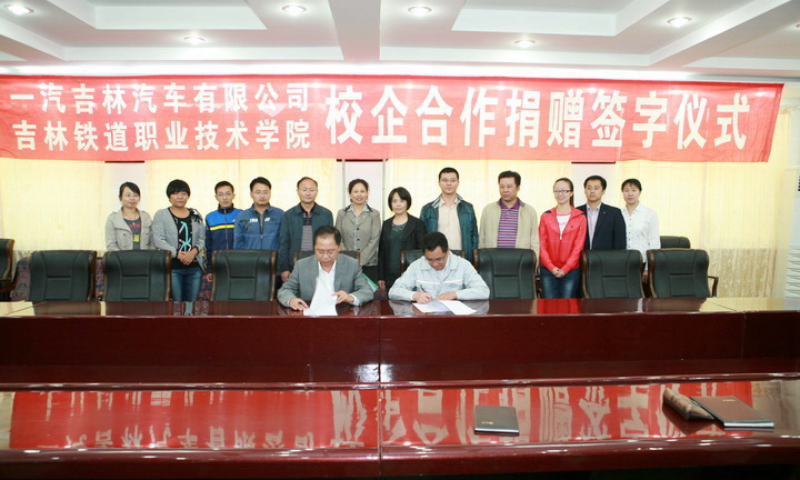2011年9月22日下午,一汽吉林汽车有限公司与我院校企合作捐赠签字仪式在学院会议室隆重举行。王华副院长与一汽吉林汽车有限公司范英伟部长代表双方共同签署了捐赠协议和校企合作开发教材、开发课程协议等。教务处处长于素芳、实训中心副主任闫刚、汽车工程系党总支书记王力群、系主任李原福以及汽车工程系教师代表也出席签字仪式。
