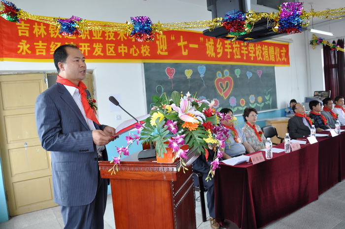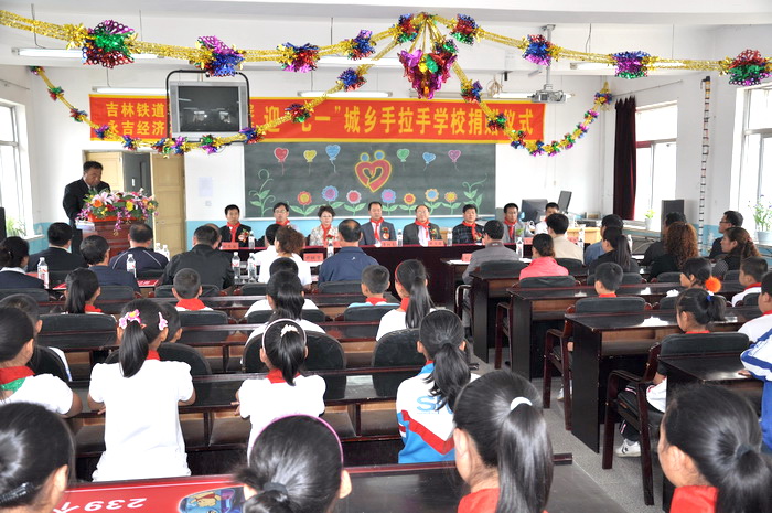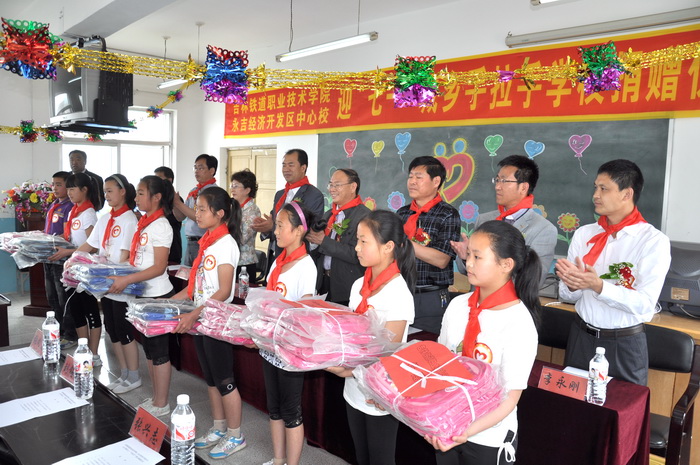 2011年5月31日上午,在伟大的中国共产党90年华诞即将来临之际,在六一儿童节即将到来之时,吉林铁道职业技术学院、永吉经济开发区中心校迎七一城乡“手拉手”学校捐赠仪式在永吉经济开发区中心校举行。